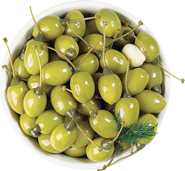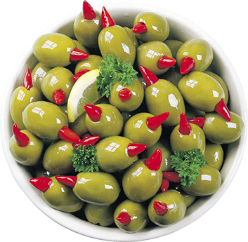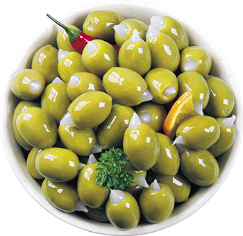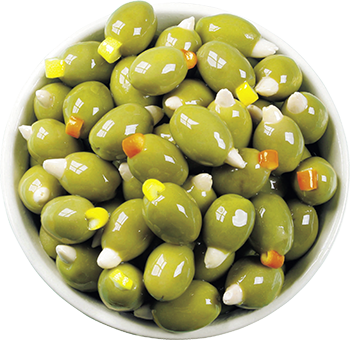 Оливки Халкидики после удаления косточки традиционно фаршируют натуральными продуктами: миндалем, корочкой апельсина и лимона, огурцом, чесноком, различными сортами перца, каперсами, вялеными томатами, мягкими и рассольными сырами. Маринованные оливки с травами и специями – это превосходная здоровая закуска и дополнение к любому блюду.
