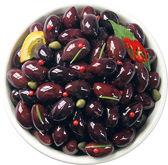 Это самый знаменитый сорт Греческих оливок, берет название от города Каламата в Южном Пелопоннесе. Эти естественно созревшие оливки собирают в декабре и готовят с добавлением красного винного уксуса.