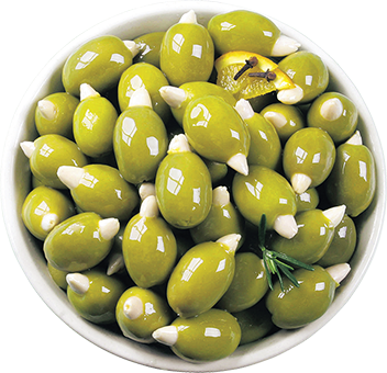 Оливки Халкидики после удаления косточки традиционно фаршируют натуральными продуктами: миндалем, корочкой апельсина и лимона, огурцом, чесноком, различными сортами перца, каперсами, вялеными томатами, мягкими и рассольными сырами. Маринованные оливки с травами и специями – это превосходная здоровая закуска и дополнение к любому блюду.