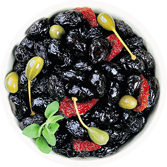 Великолепные оливковые салаты из лучших сортов Греческих оливок и средиземноморских овощей, приправленные травами и специями, в масле и в маринаде с добавлением масла.